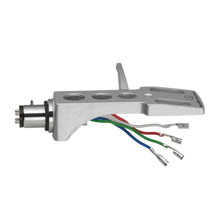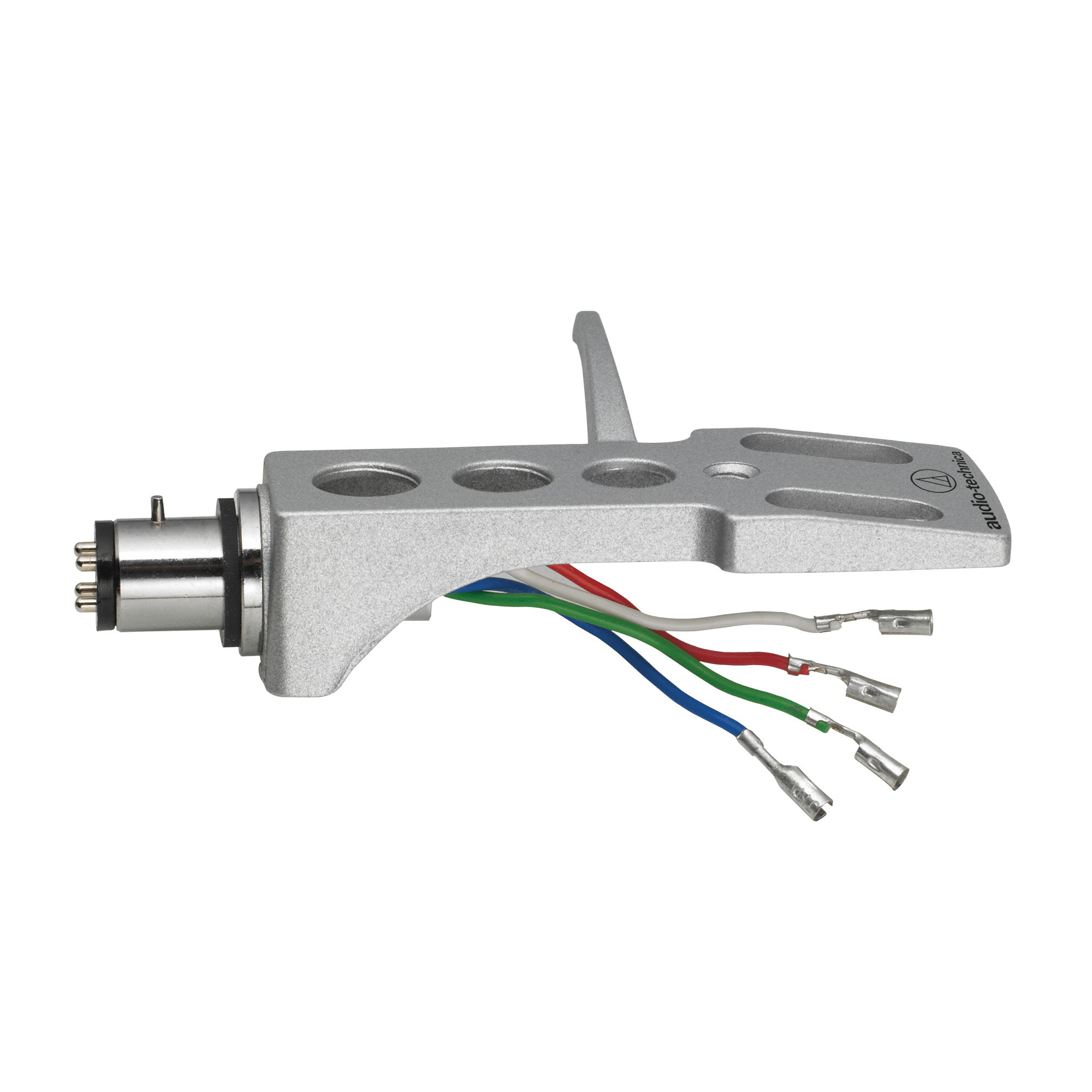 The Audio Technica AT-HS1P is a universal 1/2"-mount headshell designed for 4-pin turntable cartridges. This DJ-style headshell features robust all-metal construction and includes an integral finger lift for convenient handling. Equipped with a rubber washer, it ensures a secure fit to your tonearm, providing stability during playback. The AT-HS1P comes with color-coded headshell lead wires and cartridge mounting hardware for easy installation. Compatible with AT-LP120-USB, AT-LP240-USB, and AT-LP1240-USB Direct-Drive Professional Turntables, it's an essential accessory for DJs and vinyl enthusiasts alike.